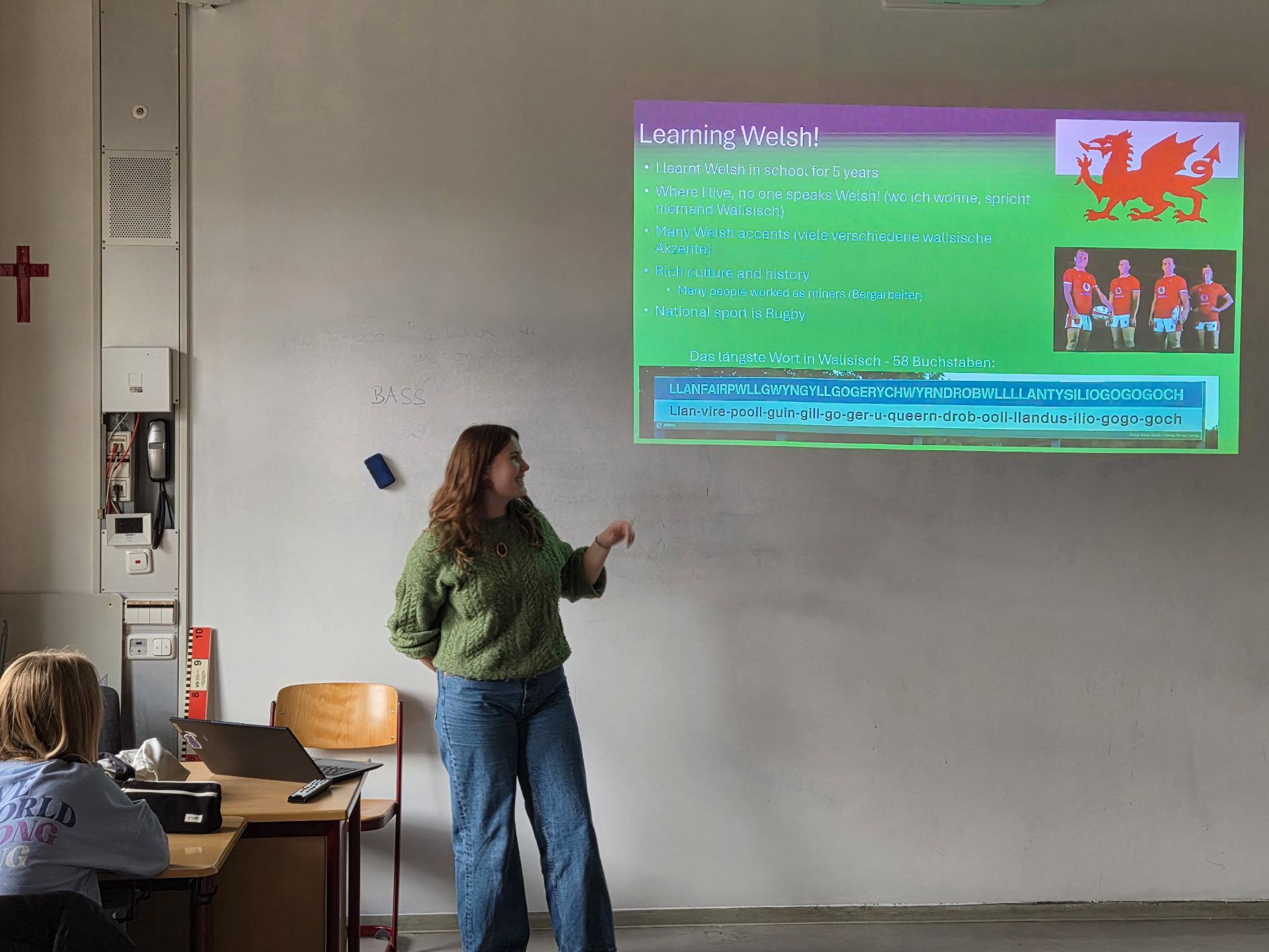 Im Rahmen ihres Auslandsjahres besuchte uns Margy, eine englische Studentin, die in Bristol BWL und Deutsch studiert. An unserer Schule war sie einen Tag lang als „assistant teacher“ im Einsatz. Dabei stellte sie sich und ihre jetzige Heimatstadt Monmouth in Wales vor und unterstützte den Englischunterricht in der Klasse 5c.