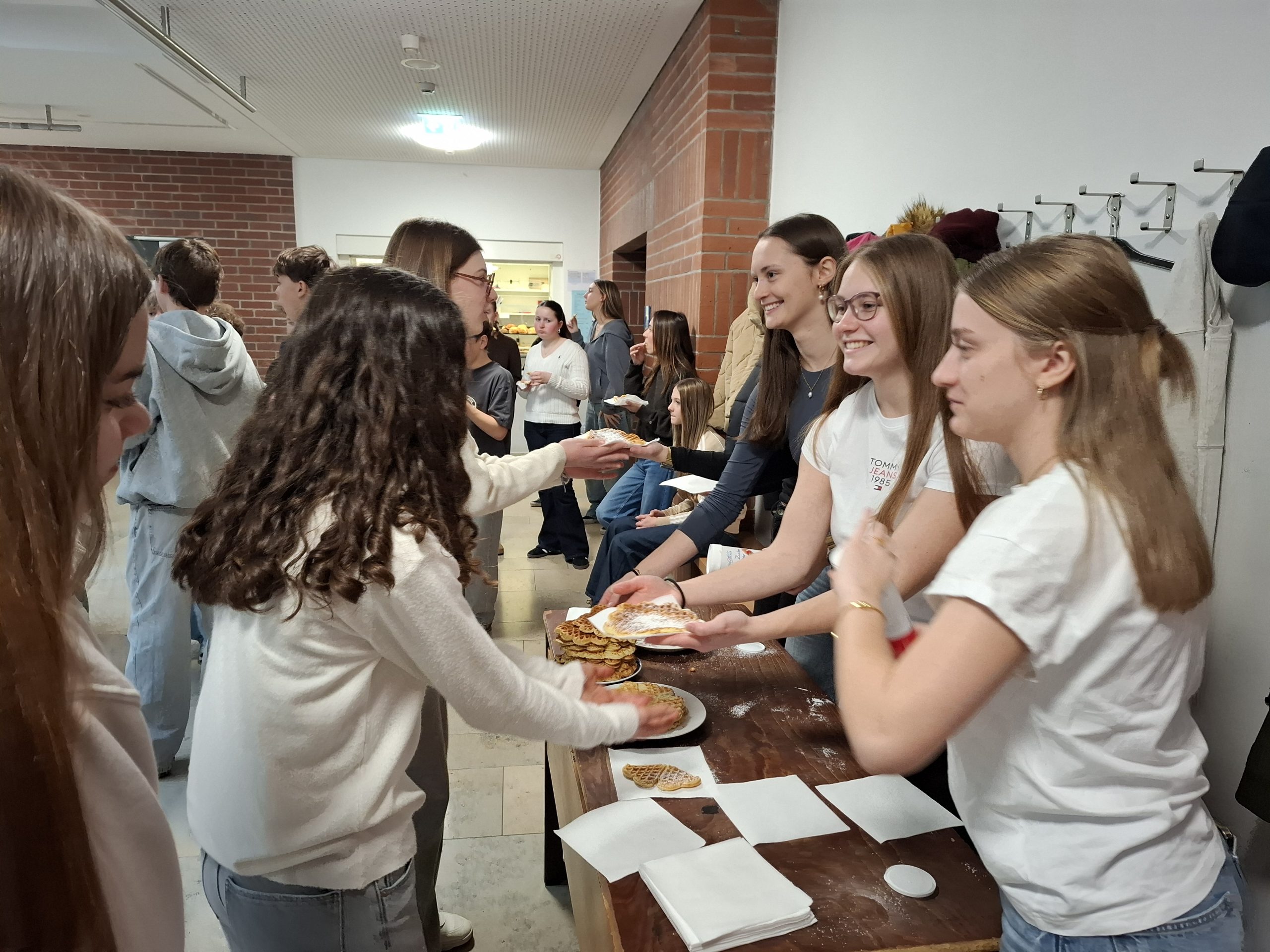 Natürlich gab es auch eine reichliche Verpflegung. Während das P-Seminar Sport in der ersten Pause Gesundes anbot, durften sich die Jugendlichen später auch noch über selbstgemachte Waffeln freuen. Eine besondere Ausstellung der 8. Klassen, die von Geschichtslehrerin Kerstin Troiber betreut wurde, fand ebenfalls großes Interesse.