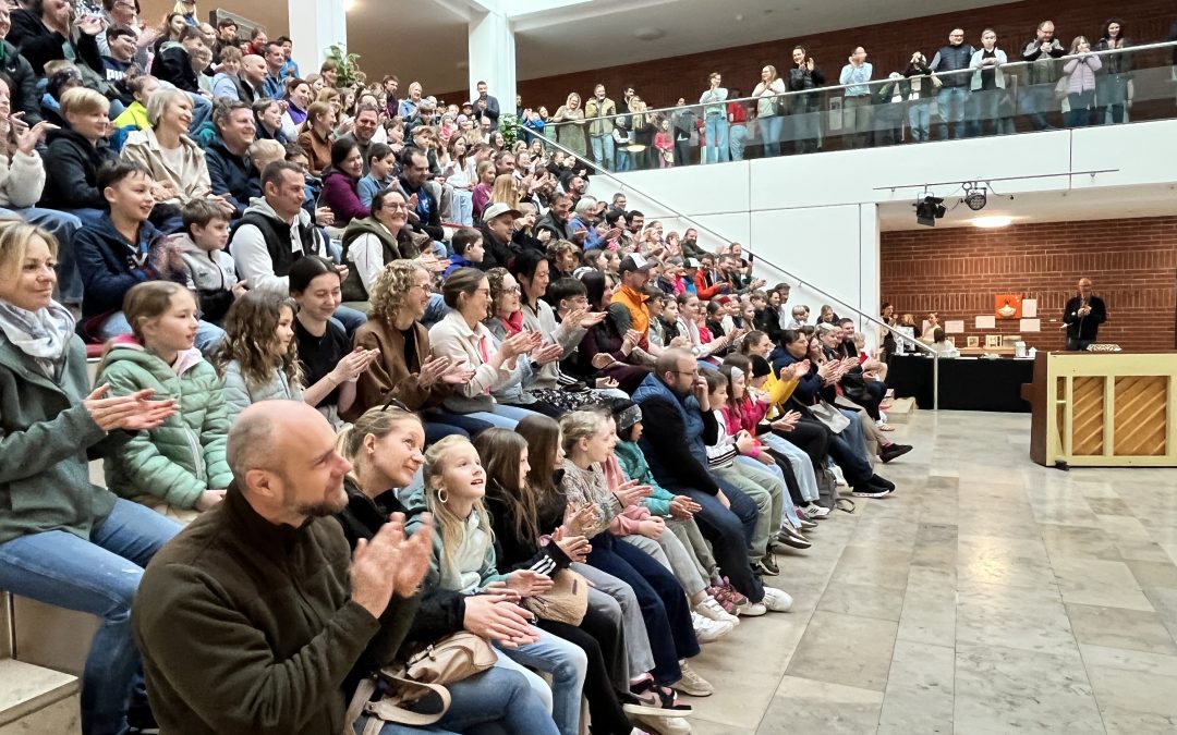 Für einen magischen Auftakt beim Tag der offenen Tür am Gymnasium sorgte der junge Zauberkünstler Anton Amberger (9c) mit einer professionellen Showeinlage. Im Handumdrehen brachte er die rund 300 Gäste zum Staunen, insbesondere, als er eine vermeintlich verlorene Visitenkarte aus seinem Mund zog.