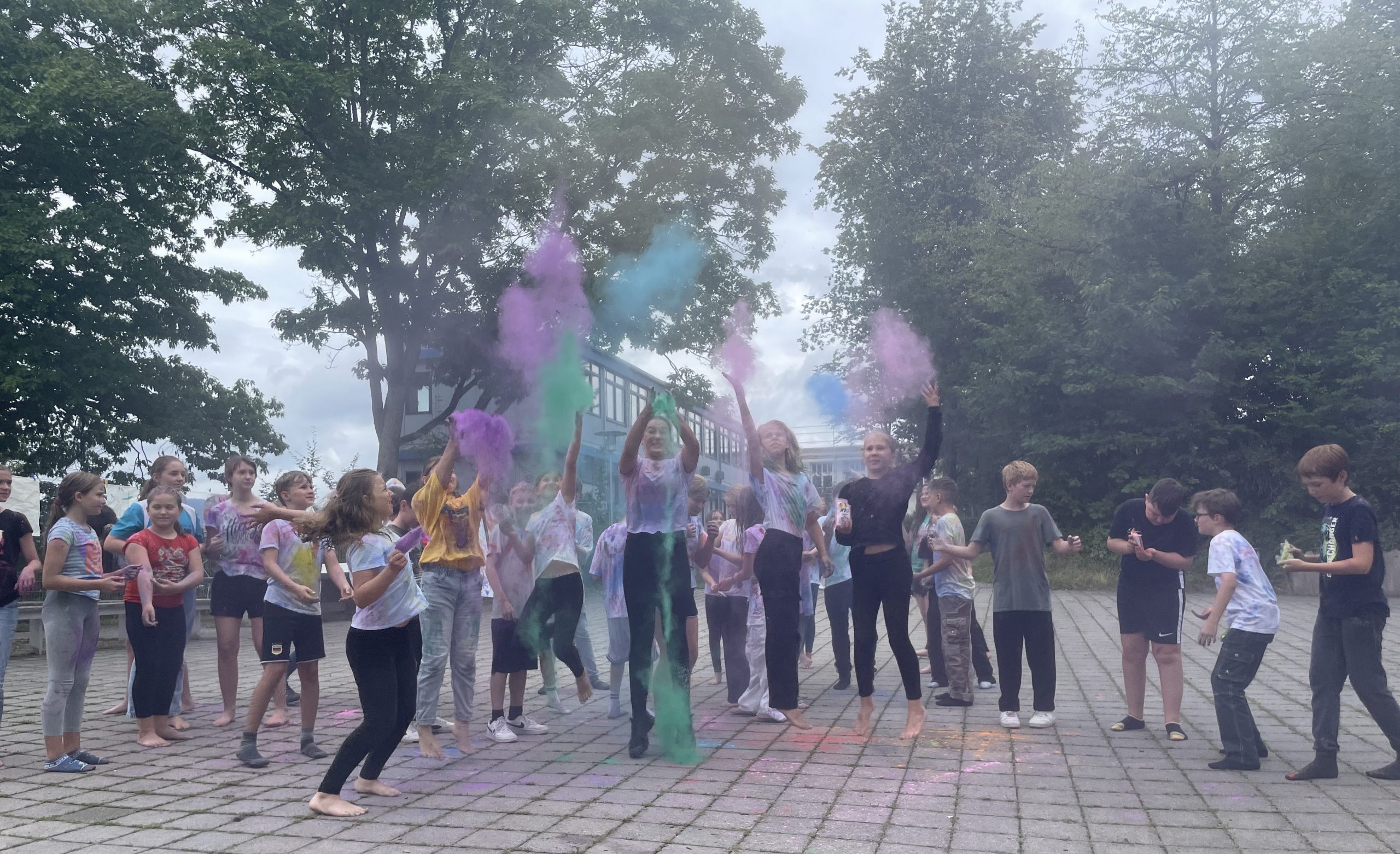 Ausgangspunkt des Projekts waren die Fragen: Was macht gute Lehrkräfte aus? Wodurch kann eine Lehrkraft den Unterschied machen? Auf der Suche nach Antworten wurde gemeinsam gemalt und gelacht, wodurch die Grenzen zwischen Schulformen und Altersgruppen spielerisch überwunden wurden. Die Schüler lernten, dass Meinungen und Erfahrungen auch künstlerisch dargestellt werden können. Ein Höhepunkt war das gemeinsame Farbenfest zum Abschluss des Schuljahres. Dabei erlebten die Kinder „Kunst am eigenen Leib“ durch Action-Painting, eine Wasserfarbenschlacht und ein Holi-Festival mit bunten Farbpulvern. Künstlerin Britta Wahlers betonte: „Farben können verbinden – und genau das haben die Kinder gespürt.“